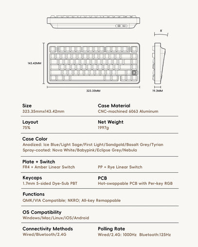- Keycaps: Upgraded 1.7mm Thickness, Dye-Sub PBT