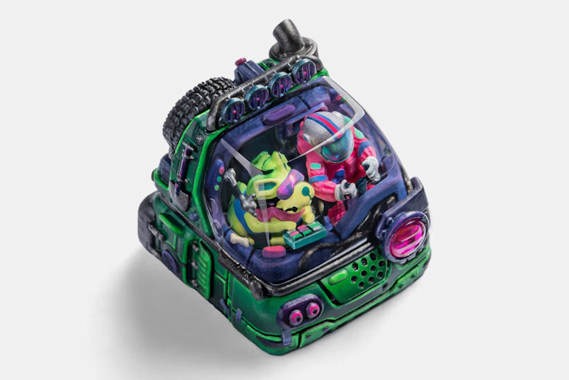 The Dwarf Factory Astrovert artisan keycaps are a testament to fantastical space travel—bringing a full astronomical narrative to your keyboard. The Adventure of Worlds set here features four different artisan styles that tell the story of a humanoid astronaut setting off on far-flung adventures. The Space-Drifter depicts an astronaut and their furry companion in a fuselage, leading the charge. The Earth keycap shows a cartoonish planet strapped to a keycap in tow, along for an adventurous ride. The Arm-Strong is so named for its movable mecha-style arm for when you need to load terrestrial cargo. Finally, the Smol-Rocket is a larger 2.25U keycap that shows a beautiful space walk in action. And as this full array is designed and made by Dwarf Factory, you can expect impeccable attention to detail, impressive quality, and colorways that’ll align (like the stars themselves) to any desk setup.