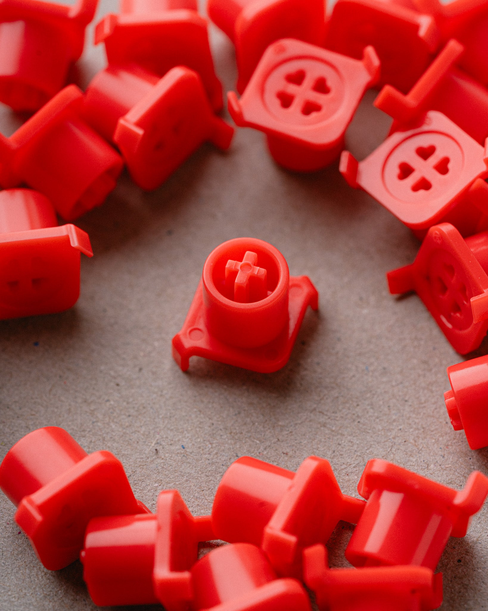 Extended MX stem to match MX keycap height and prevent interference. Snug yet safe keycap fit. Clip-less design for easier installation and prevention of broken clips getting lost in your build. Optimized for DynaCap™, but works with third-party housings too.