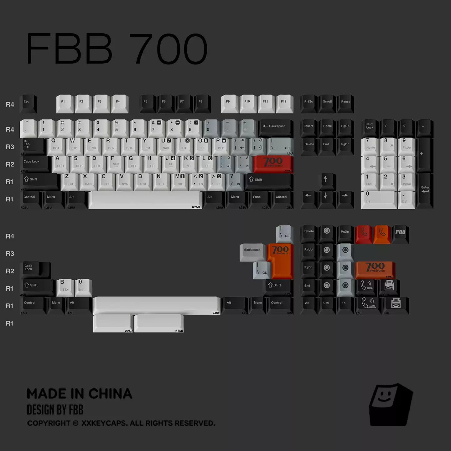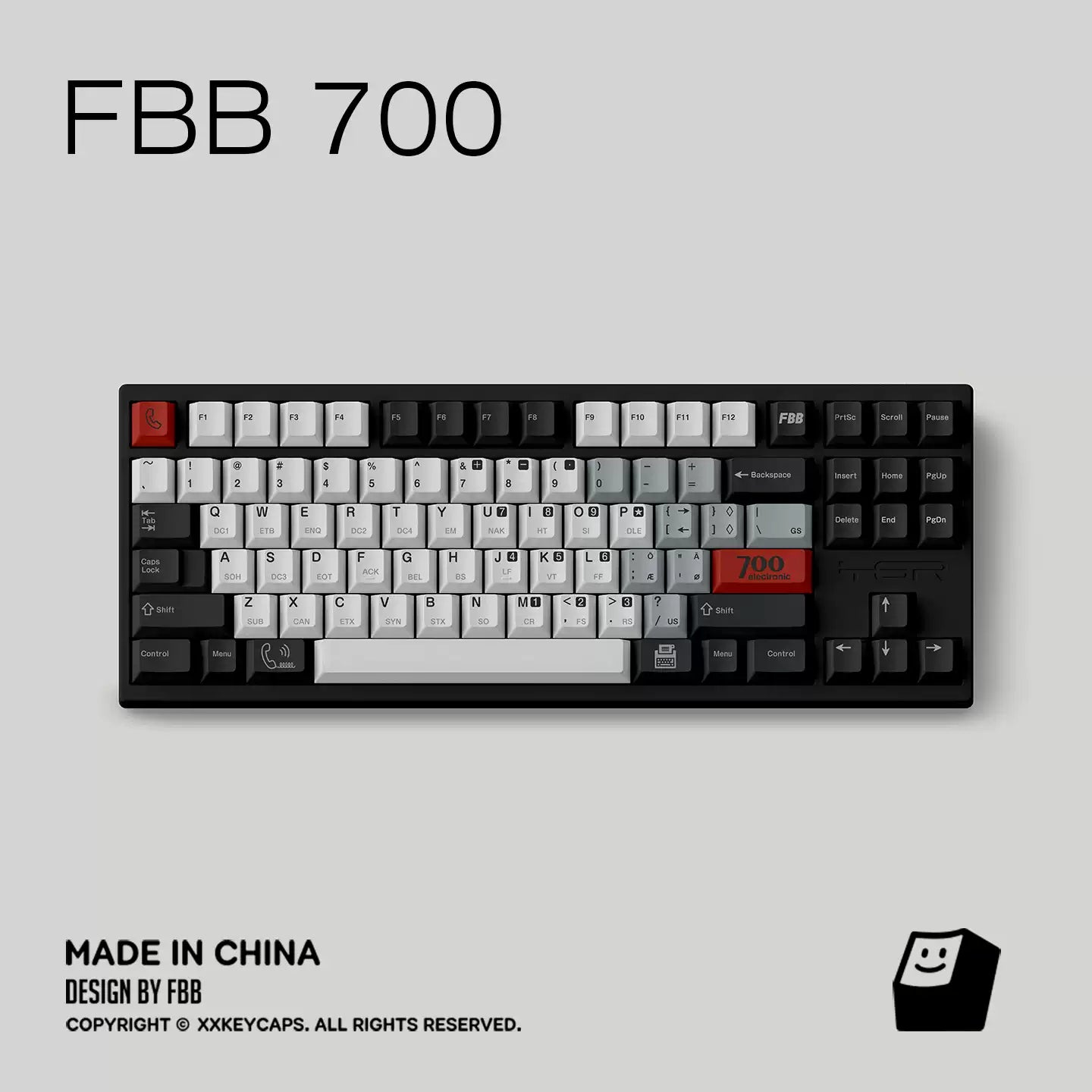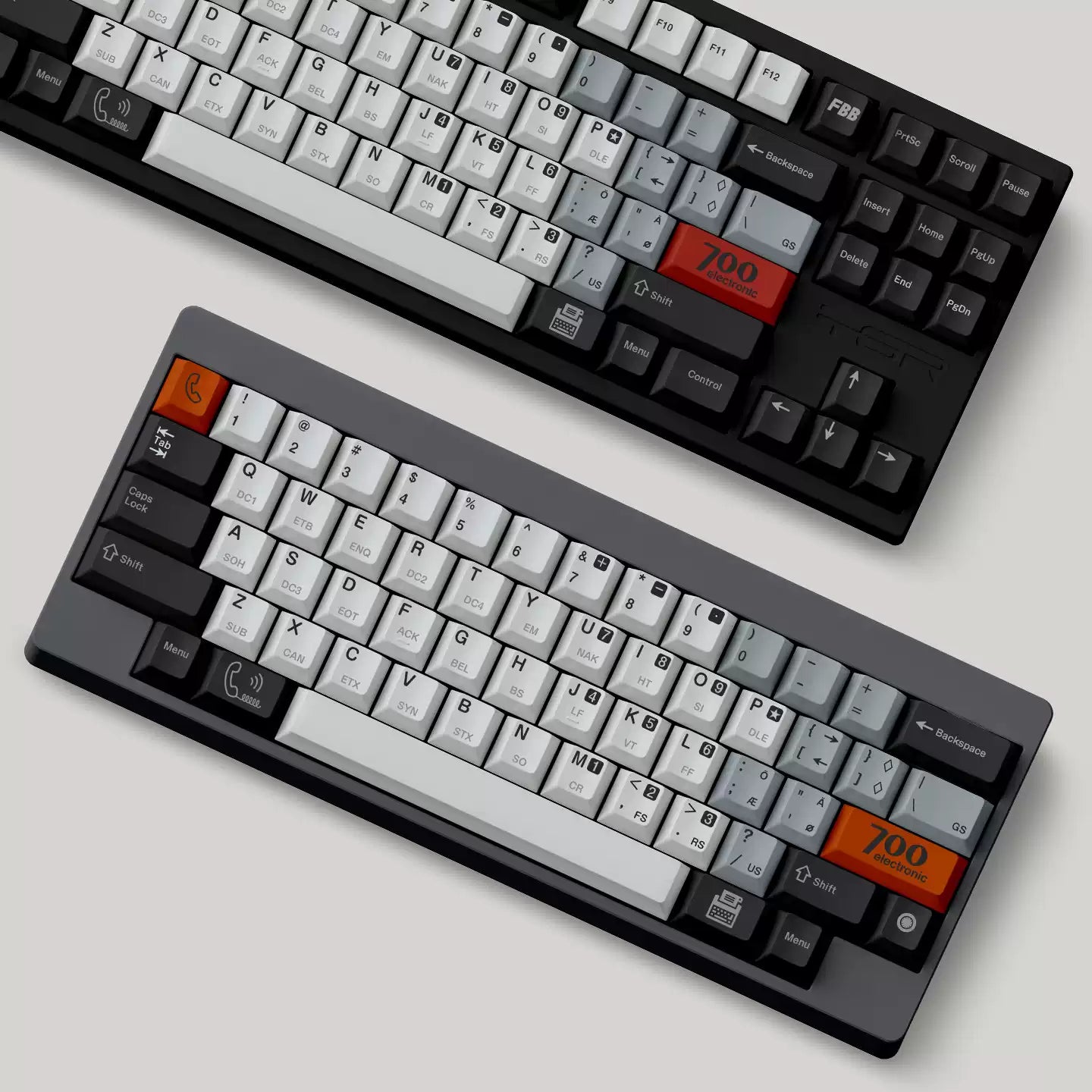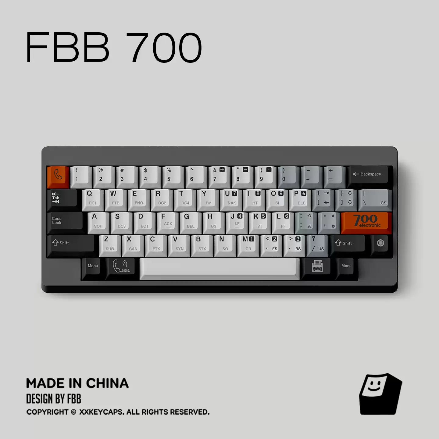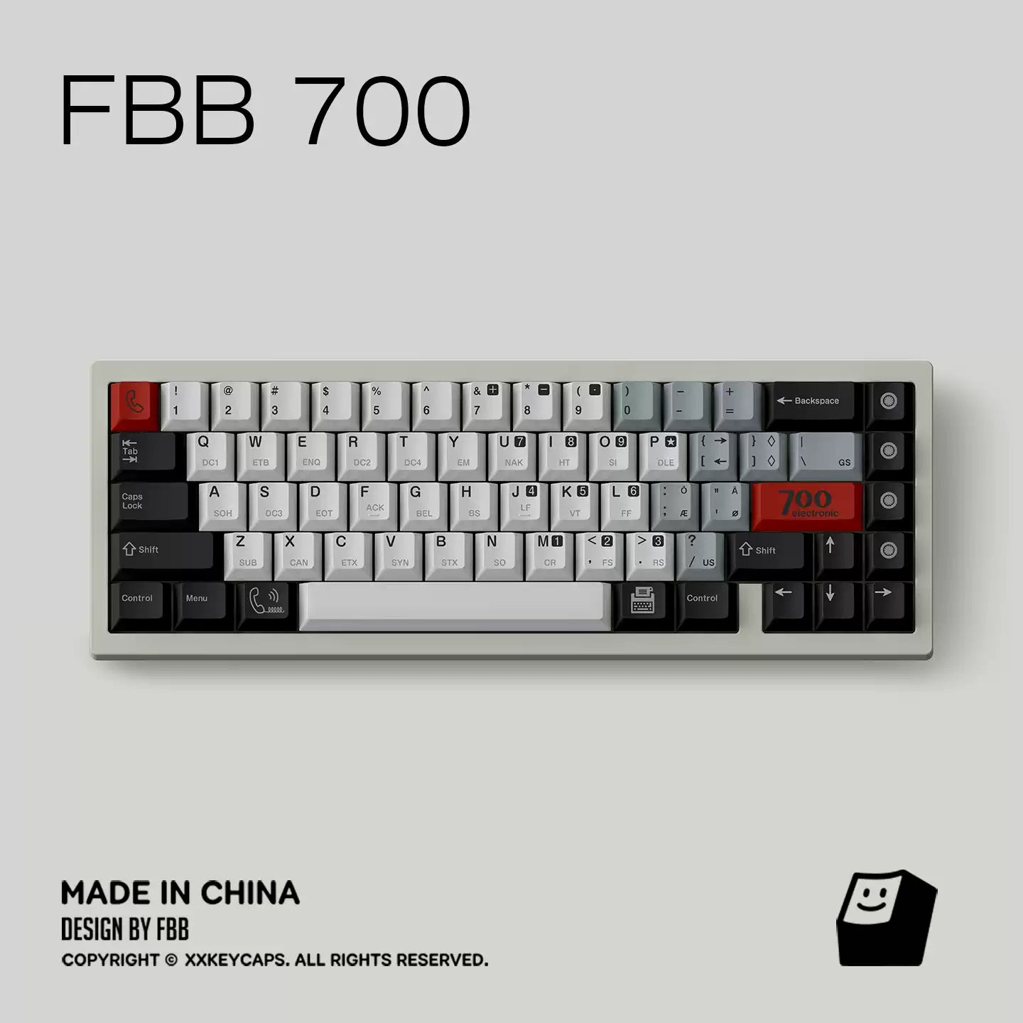 Clean greys and off-whites recreate the utilitarian look of early data terminals, while bold safety accents add the kind of punch you’d expect from classic hardware labels and panel markings. The control-code sublegends are the cherry on top: subtle from afar, deeply nerdy up close.