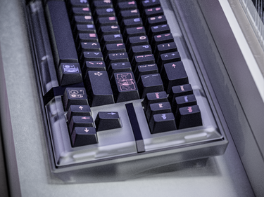 MECHA X TUT: LOFI is a dark purple keycap set with different shades of pink and lilac: Inspired by all those late nights staying up.